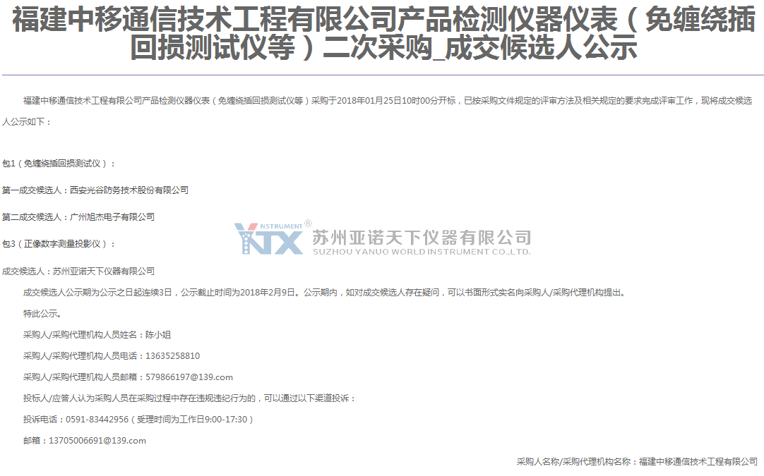喜訊——亞諾天下公司中標(biāo)福建中移公司