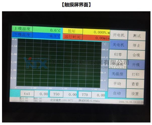 2) 隨著硫化開始,膠料試樣的剛度增大,測力機構測出的反作用力(力矩)會逐步上升到穩定值或 值并通過屏幕逐漸顯示出來,同時看到一條力矩與時間的對應關系曲線圖,通常稱為“硫化曲線”。曲線的形狀和試驗溫度與膠料的特性有關。試驗結束后,數據、曲線將自動存儲到數據庫中,如果需要打印,直接點擊“打印”即可。